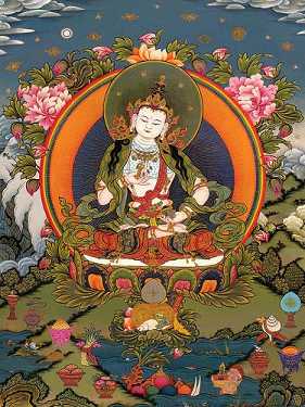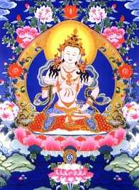 Vajrasattva汉译金刚萨埵,是佛教典籍中与普贤菩萨同体异名的圣尊。释迦牟尼佛曾在经典中说有三部佛、五部佛、千部佛乃至无数诸佛,而其中的主尊就是金刚萨埵,就象一个王国中有国王、大臣、平民等各式人等,但其中最尊贵的是国王一样,金刚萨埵是“如海诸部坛城主”。礼敬金刚萨埵的咒语为“南无 谷乎 哇指拉 萨特哇耶”,梵文 Namo Guru Vajrasattvāya。意思是:向众生依祜之主金刚萨埵圣尊致以皈依的敬礼!