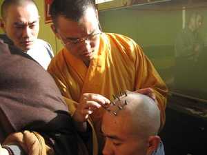 出家僧人在头上烧几个疤,有烧三个、六个、九个、十二个的,这个不叫戒疤,叫香疤。这个跟受戒没有必然的联系,准确地说它就是烧我们的身体来供佛,来表达这样一种虔诚的意思,你来花两块钱买香,我用我自己的身体来烧香供佛,通过这种行为来表达自己内心的一种特殊愿望,或者说表达一种特别的意义,来激励自己来达到某个不太容易完成的一种向往,跟受戒没有关系。