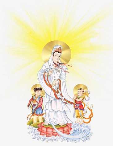 观音救子惩恶的故事在当地百姓中被传得沸沸扬扬,最后人们就将观世音菩萨视为送子观音。凡是没有子女的夫妇不是到寺中祭拜就是将观音佛像请回家中加以供奉,以求得到送子观音的保佑。这个观音救子的民间传说无疑是佛教为了和道教争取信徒而杜撰出来的故事,但不管怎么说,送子观音在古人心中都是一位极重要的婚育神,其地位可与中国道教的子孙娘娘相媲美。