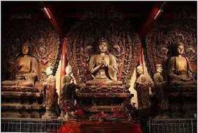 左侧供奉为东方净琉璃世界的药师佛(Bhaisajyaguru)