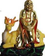 宾度罗跋罗堕阁尊者——坐鹿罗汉,端坐神鹿、若有所思 泰然自若、清高自赏。宾度罗是印度十八姓中之一,是贵族婆罗门的望族,跋罗堕阁是名。这位罗汉本来是印度优陀延王的大臣,权倾一国,但他忽然发心去做和尚。