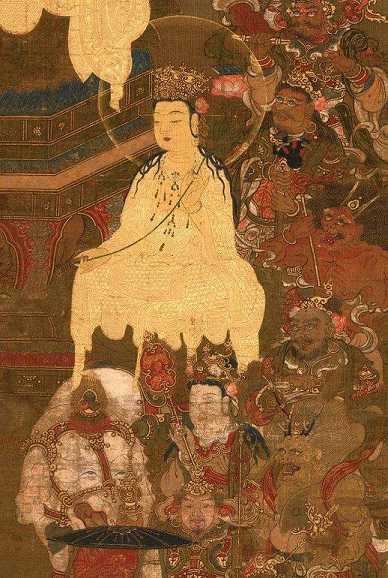 ...查看更多般若守护十六善神的尊形,除《别尊杂记》绘有其像外,在唐朝金刚智也绘有十六善神图(后被日僧空海携回日本),呈神王形,以释迦如来为中心,左右有文殊、普贤、法涌与阿难、玄奘与深沙大将等并列,两侧则分列十六善神,但此图所列的尊名与上述略有差异。