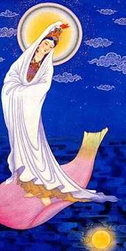 12.水月观音:在月光下乘莲华舟于海上。