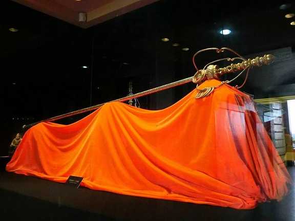 这边有一个要各位看一下,这一个锡杖,这个是宝贝。我们四月份去不丹,不丹有一间叫帕莫比丘尼,就是莲花比丘尼,就是藏传佛教传出藏传大悲咒(十一面观自在菩萨根本咒)的。这位比丘尼,而且传出观音纽涅,八关斋戒这位比丘尼尊者。这个锡杖就放在她形象旁边,还有一件袈裟,我们那一次去礼拜,有感应,然后就给我讲说"师父,这位尊者给你说,你要把这个锡杖带走,这是你的法器,你的法器之一。"然后这下问题就来了,人家那个古物怎么带走?所以我只好掏出很多美金,好几千块美金。我说,能不能打电话给住持和尚,说我们要给他很多美金。然后这一支很旧了,它现在又拿去贴金,又重新做好了,因为很旧了,腐化掉了,然后能不能请走。