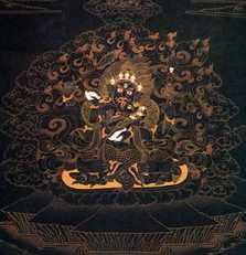 大黑天(梵语:Mahākāla,藏语:Gonpo)又意译为大黑、大时、大黑神或大黑天神等,或者直接音译为摩诃迦罗、莫诃哥罗、玛哈嘎拉等名称。该神本是婆罗门教湿婆(梵语:Shiva,梵语又名: Maheshvara,即大自在天)的变身,后为佛教吸收而成为佛教的护法,特别是在密宗中大黑天是重要的护法神。藏传佛教认为大黑天是毗卢遮那佛(梵语:Vairocana,藏语:nam par nang zhe,或称为大日如来)降魔时呈现出的忿怒相。